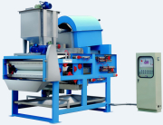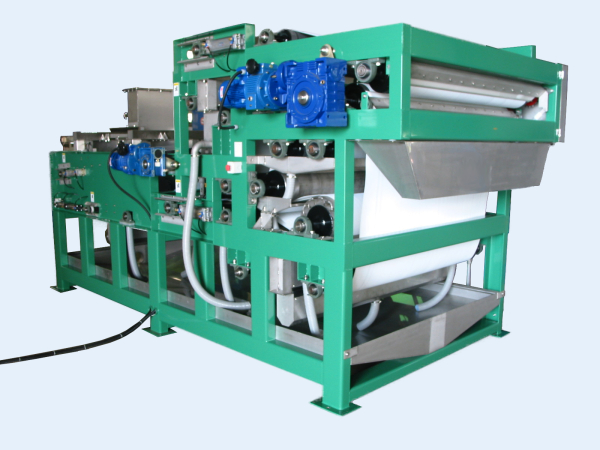 9.空圧・油圧変換による濾布張力システムにより、含水率65%〜83%の汚泥ケーキを生成。